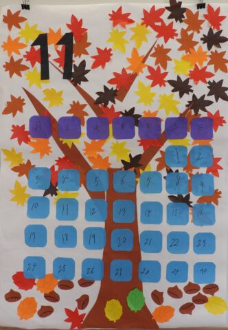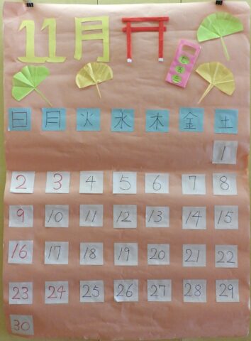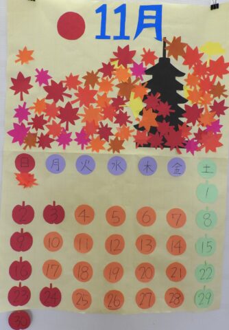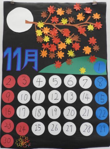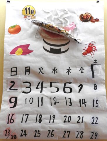 各病棟では工夫を凝らしたカレンダーや装飾で秋が溢れています。